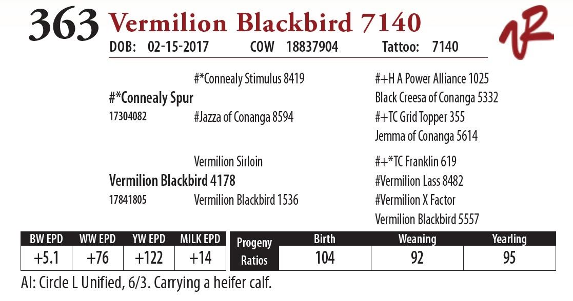 All bulls will be covered 50% by Vermilion Ranch if they are injured during their first breeding season. Breeding season is defined as the 60-day period following the first turnout of bulls.