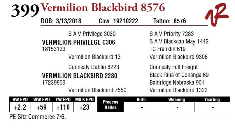 All bulls will be covered 50% by Vermilion Ranch if they are injured during their first breeding season. Breeding season is defined as the 60-day period following the first turnout of bulls.