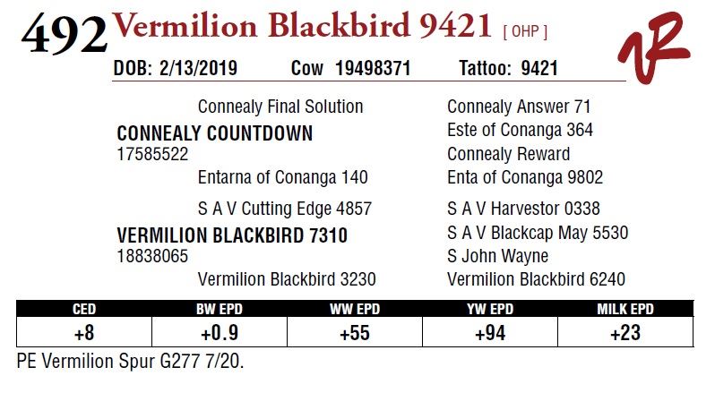 All bulls will be covered 50% by Vermilion Ranch if they are injured during their first breeding season. Breeding season is defined as the 60-day period following the first turnout of bulls.
