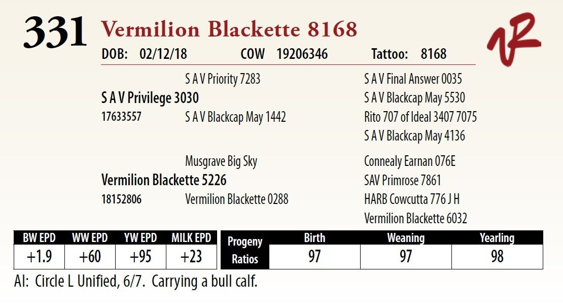 All bulls will be covered 50% by Vermilion Ranch if they are injured during their first breeding season. Breeding season is defined as the 60-day period following the first turnout of bulls.