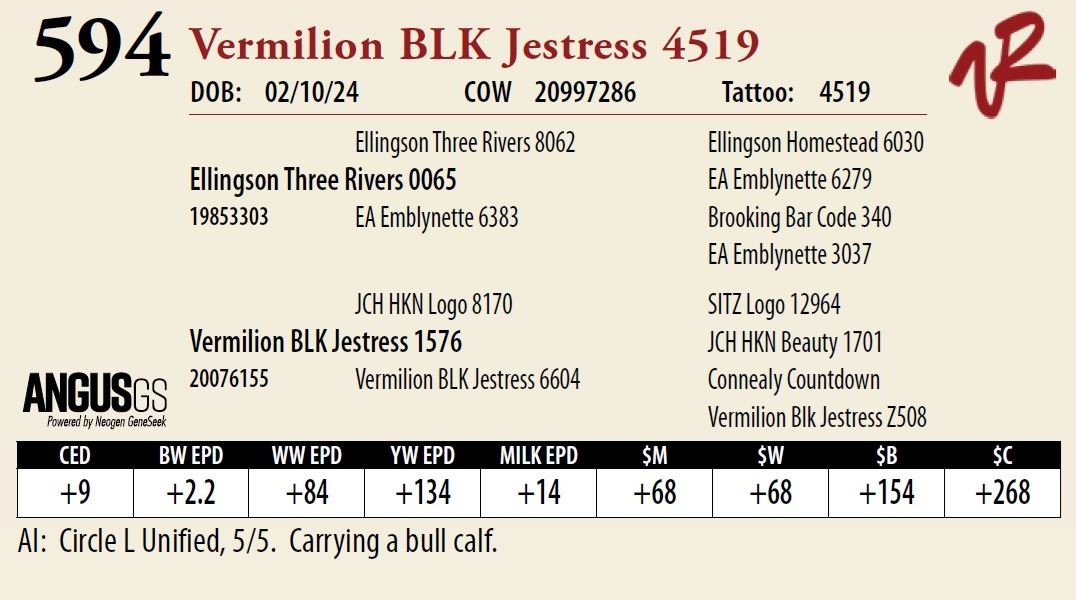 All bulls will be covered 50% by Vermilion Ranch if they are injured during their first breeding season. Breeding season is defined as the 60-day period following the first turnout of bulls.
