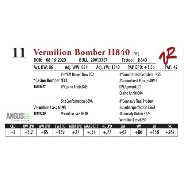 All bulls will be covered 50% by Vermilion Ranch if they are injured during their first breeding season. Breeding season is defined as the 60-day period following the first turnout of bulls.