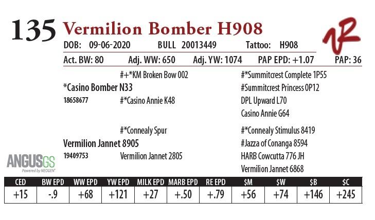 All bulls will be covered 50% by Vermilion Ranch if they are injured during their first breeding season. Breeding season is defined as the 60-day period following the first turnout of bulls.