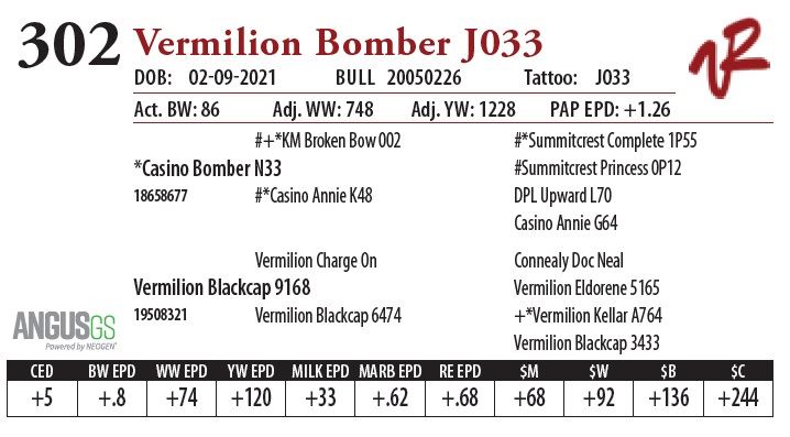 All bulls will be covered 50% by Vermilion Ranch if they are injured during their first breeding season. Breeding season is defined as the 60-day period following the first turnout of bulls.