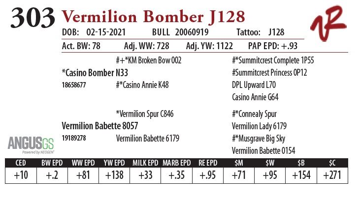 All bulls will be covered 50% by Vermilion Ranch if they are injured during their first breeding season. Breeding season is defined as the 60-day period following the first turnout of bulls.