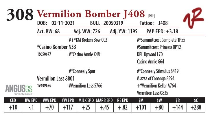 All bulls will be covered 50% by Vermilion Ranch if they are injured during their first breeding season. Breeding season is defined as the 60-day period following the first turnout of bulls.