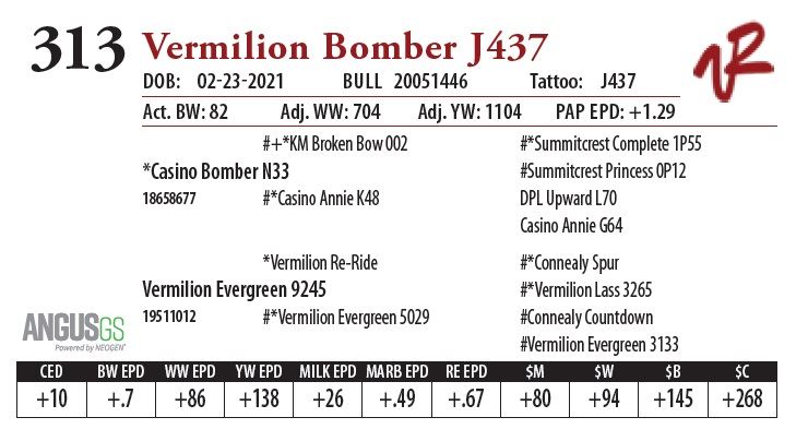 All bulls will be covered 50% by Vermilion Ranch if they are injured during their first breeding season. Breeding season is defined as the 60-day period following the first turnout of bulls.