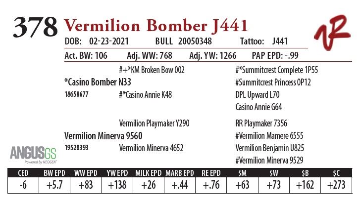 All bulls will be covered 50% by Vermilion Ranch if they are injured during their first breeding season. Breeding season is defined as the 60-day period following the first turnout of bulls.