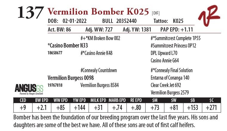 All bulls will be covered 50% by Vermilion Ranch if they are injured during their first breeding season. Breeding season is defined as the 60-day period following the first turnout of bulls.