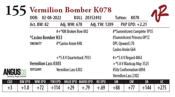 All bulls will be covered 50% by Vermilion Ranch if they are injured during their first breeding season. Breeding season is defined as the 60-day period following the first turnout of bulls.