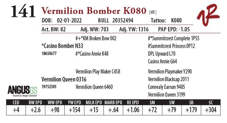 All bulls will be covered 50% by Vermilion Ranch if they are injured during their first breeding season. Breeding season is defined as the 60-day period following the first turnout of bulls.
