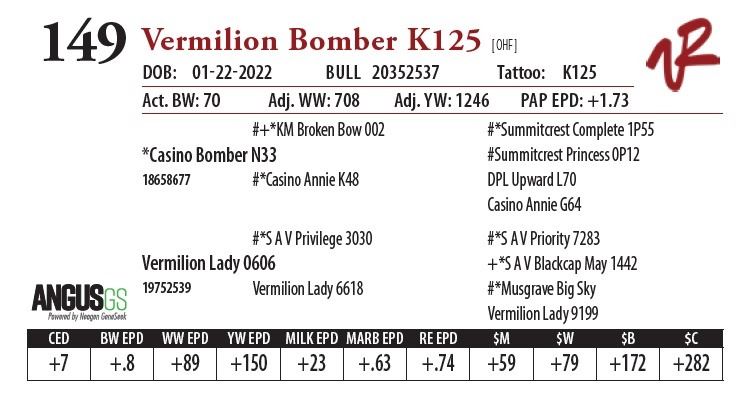 All bulls will be covered 50% by Vermilion Ranch if they are injured during their first breeding season. Breeding season is defined as the 60-day period following the first turnout of bulls.
