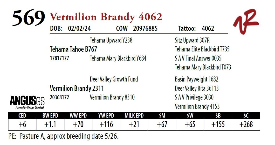 All bulls will be covered 50% by Vermilion Ranch if they are injured during their first breeding season. Breeding season is defined as the 60-day period following the first turnout of bulls.