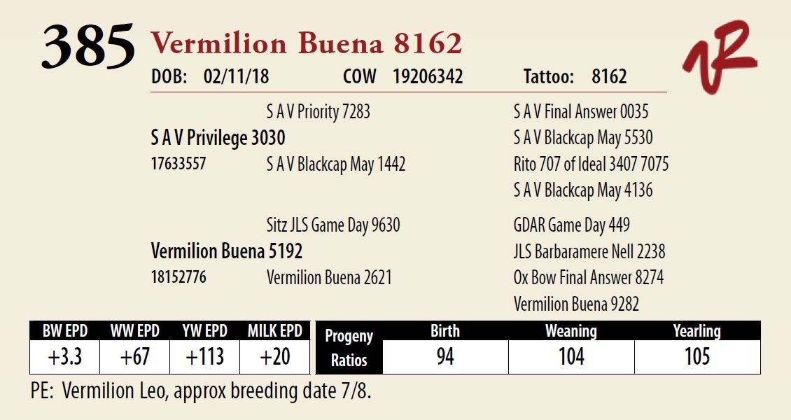 All bulls will be covered 50% by Vermilion Ranch if they are injured during their first breeding season. Breeding season is defined as the 60-day period following the first turnout of bulls.