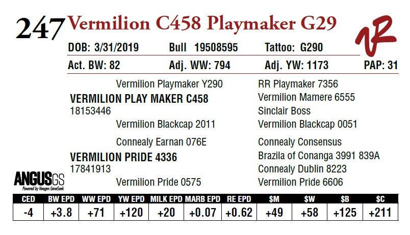 All bulls will be covered 50% by Vermilion Ranch if they are injured during their first breeding season. Breeding season is defined as the 60-day period following the first turnout of bulls.