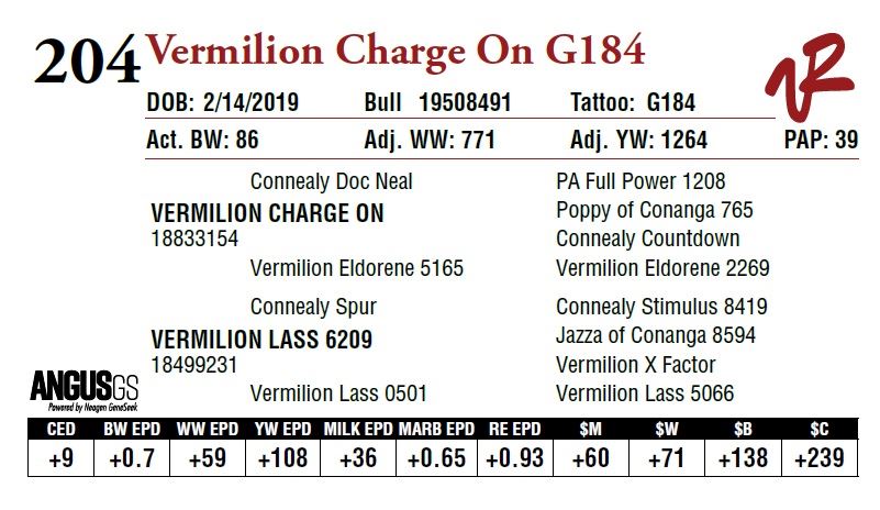 All bulls will be covered 50% by Vermilion Ranch if they are injured during their first breeding season. Breeding season is defined as the 60-day period following the first turnout of bulls.