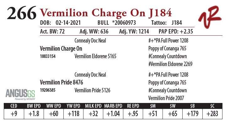 All bulls will be covered 50% by Vermilion Ranch if they are injured during their first breeding season. Breeding season is defined as the 60-day period following the first turnout of bulls.