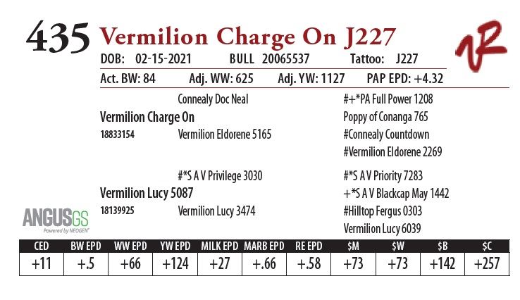 All bulls will be covered 50% by Vermilion Ranch if they are injured during their first breeding season. Breeding season is defined as the 60-day period following the first turnout of bulls.