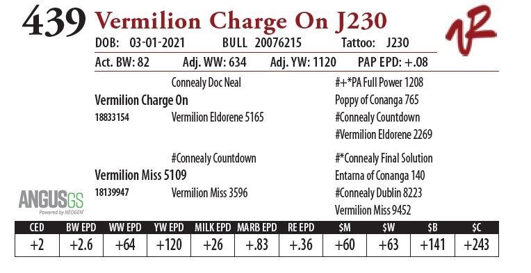All bulls will be covered 50% by Vermilion Ranch if they are injured during their first breeding season. Breeding season is defined as the 60-day period following the first turnout of bulls.