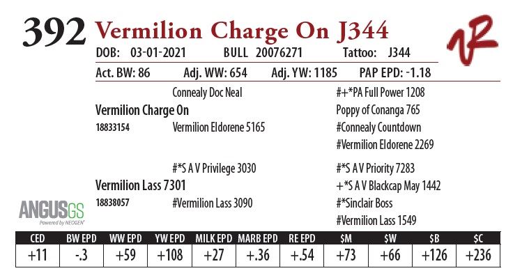 All bulls will be covered 50% by Vermilion Ranch if they are injured during their first breeding season. Breeding season is defined as the 60-day period following the first turnout of bulls.