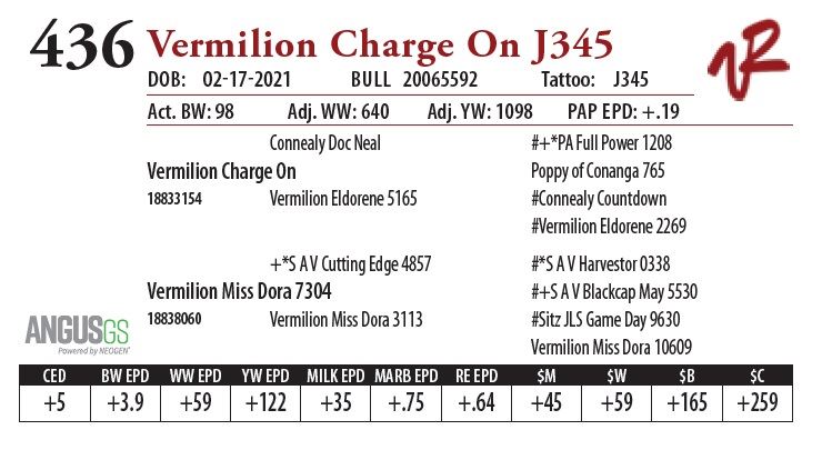 All bulls will be covered 50% by Vermilion Ranch if they are injured during their first breeding season. Breeding season is defined as the 60-day period following the first turnout of bulls.