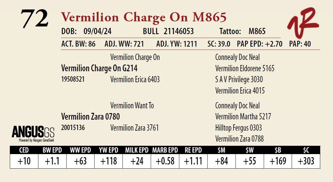 All bulls will be covered 50% by Vermilion Ranch if they are injured during their first breeding season. Breeding season is defined as the 60-day period following the first turnout of bulls.