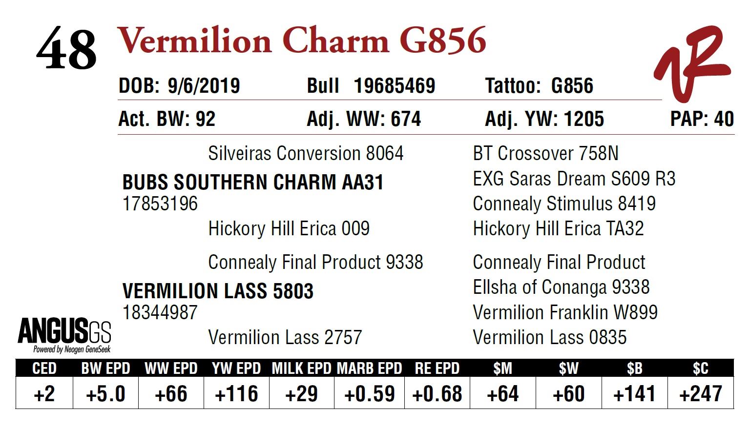 All bulls will be covered 50% by Vermilion Ranch if they are injured during their first breeding season. Breeding season is defined as the 60-day period following the first turnout of bulls.