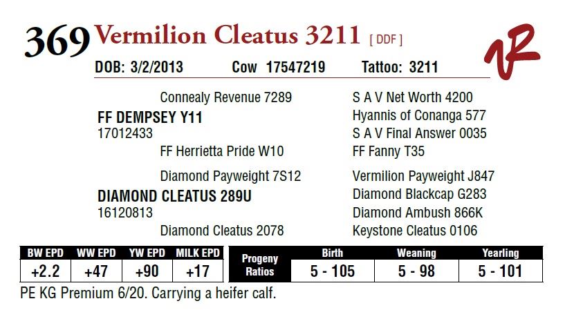 All bulls will be covered 50% by Vermilion Ranch if they are injured during their first breeding season. Breeding season is defined as the 60-day period following the first turnout of bulls.