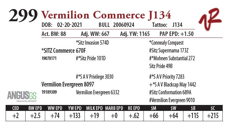 All bulls will be covered 50% by Vermilion Ranch if they are injured during their first breeding season. Breeding season is defined as the 60-day period following the first turnout of bulls.