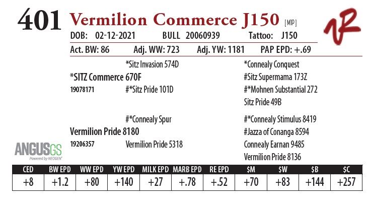 All bulls will be covered 50% by Vermilion Ranch if they are injured during their first breeding season. Breeding season is defined as the 60-day period following the first turnout of bulls.
