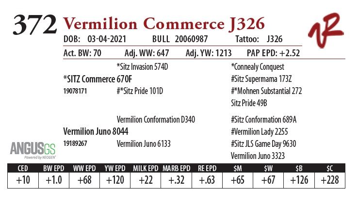 All bulls will be covered 50% by Vermilion Ranch if they are injured during their first breeding season. Breeding season is defined as the 60-day period following the first turnout of bulls.