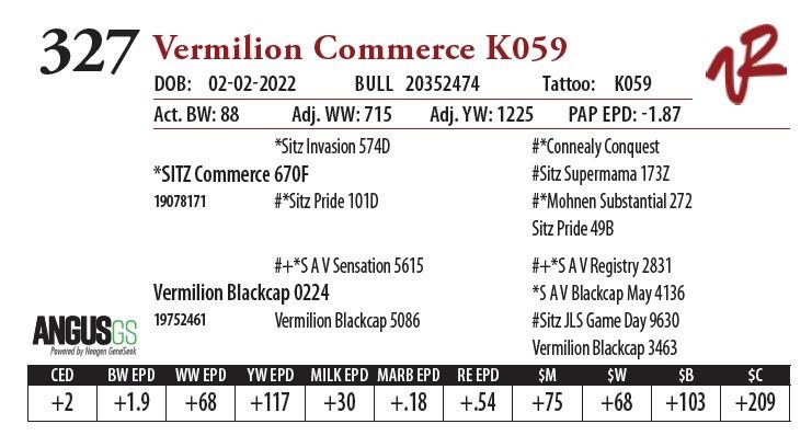 All bulls will be covered 50% by Vermilion Ranch if they are injured during their first breeding season. Breeding season is defined as the 60-day period following the first turnout of bulls.