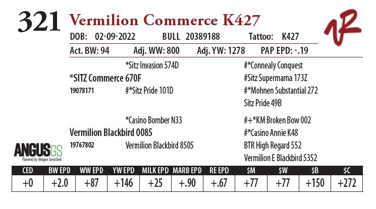 All bulls will be covered 50% by Vermilion Ranch if they are injured during their first breeding season. Breeding season is defined as the 60-day period following the first turnout of bulls.