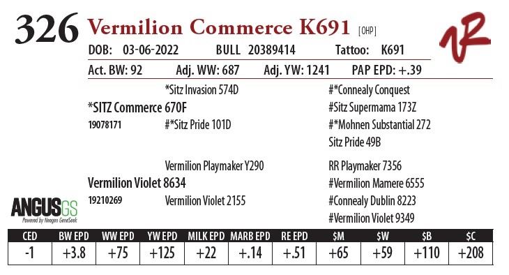 All bulls will be covered 50% by Vermilion Ranch if they are injured during their first breeding season. Breeding season is defined as the 60-day period following the first turnout of bulls.