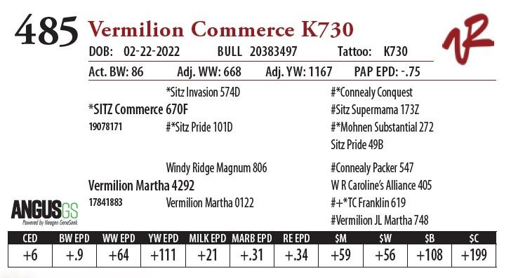 All bulls will be covered 50% by Vermilion Ranch if they are injured during their first breeding season. Breeding season is defined as the 60-day period following the first turnout of bulls.