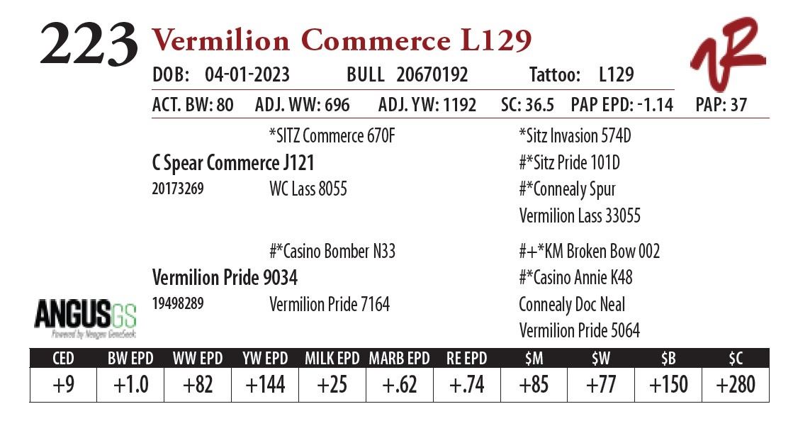 All bulls will be covered 50% by Vermilion Ranch if they are injured during their first breeding season. Breeding season is defined as the 60-day period following the first turnout of bulls.