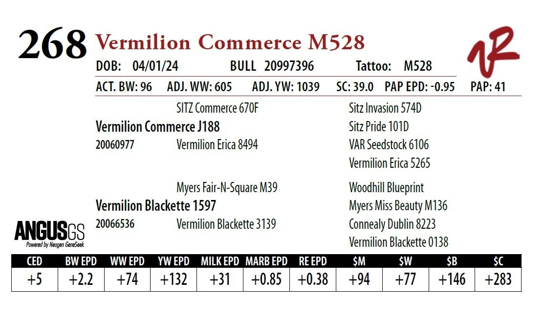 All bulls will be covered 50% by Vermilion Ranch if they are injured during their first breeding season. Breeding season is defined as the 60-day period following the first turnout of bulls.
