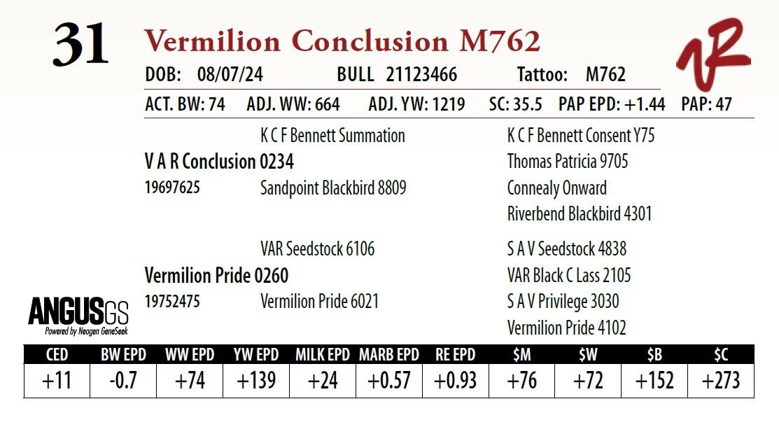 All bulls will be covered 50% by Vermilion Ranch if they are injured during their first breeding season. Breeding season is defined as the 60-day period following the first turnout of bulls.