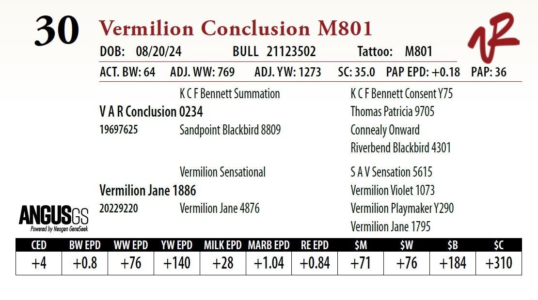 All bulls will be covered 50% by Vermilion Ranch if they are injured during their first breeding season. Breeding season is defined as the 60-day period following the first turnout of bulls.