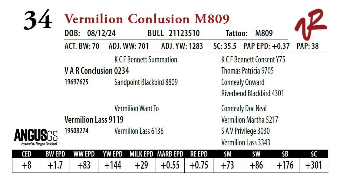 All bulls will be covered 50% by Vermilion Ranch if they are injured during their first breeding season. Breeding season is defined as the 60-day period following the first turnout of bulls.