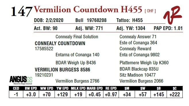 All bulls will be covered 50% by Vermilion Ranch if they are injured during their first breeding season. Breeding season is defined as the 60-day period following the first turnout of bulls.