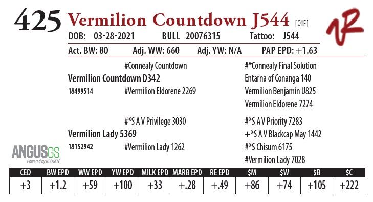 All bulls will be covered 50% by Vermilion Ranch if they are injured during their first breeding season. Breeding season is defined as the 60-day period following the first turnout of bulls.