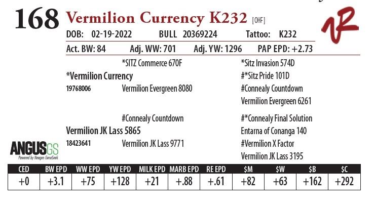 All bulls will be covered 50% by Vermilion Ranch if they are injured during their first breeding season. Breeding season is defined as the 60-day period following the first turnout of bulls.