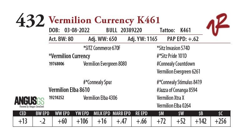 All bulls will be covered 50% by Vermilion Ranch if they are injured during their first breeding season. Breeding season is defined as the 60-day period following the first turnout of bulls.