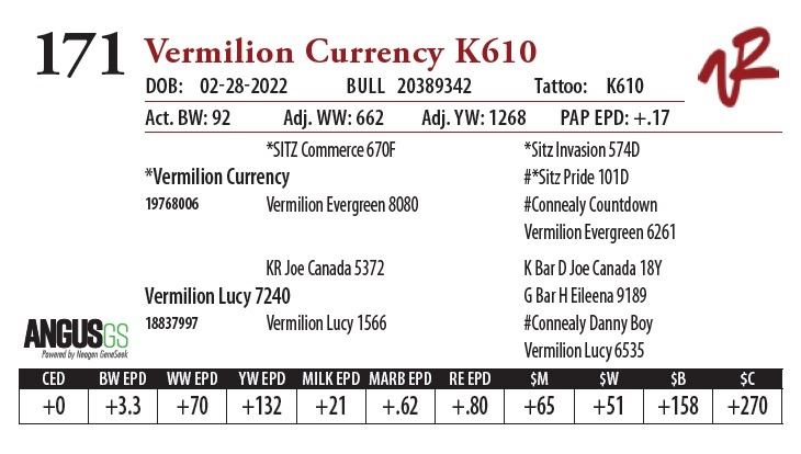 All bulls will be covered 50% by Vermilion Ranch if they are injured during their first breeding season. Breeding season is defined as the 60-day period following the first turnout of bulls.