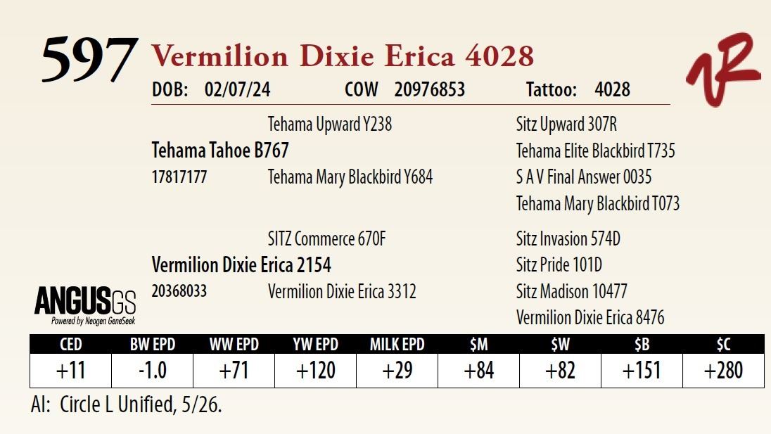 All bulls will be covered 50% by Vermilion Ranch if they are injured during their first breeding season. Breeding season is defined as the 60-day period following the first turnout of bulls.