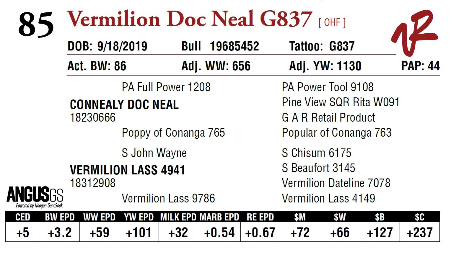All bulls will be covered 50% by Vermilion Ranch if they are injured during their first breeding season. Breeding season is defined as the 60-day period following the first turnout of bulls.