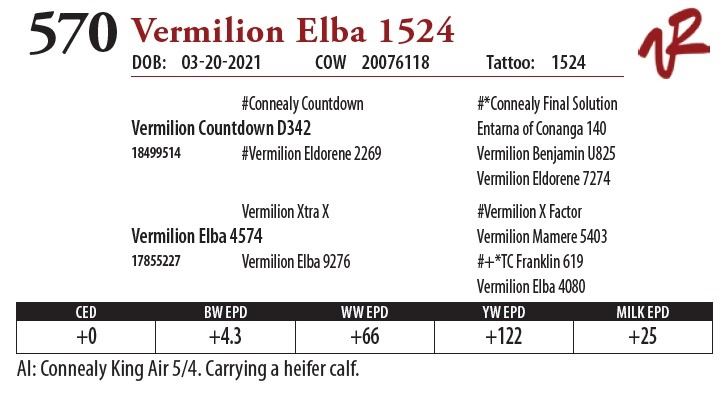 All bulls will be covered 50% by Vermilion Ranch if they are injured during their first breeding season. Breeding season is defined as the 60-day period following the first turnout of bulls.