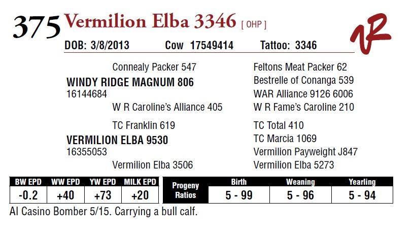 All bulls will be covered 50% by Vermilion Ranch if they are injured during their first breeding season. Breeding season is defined as the 60-day period following the first turnout of bulls.
