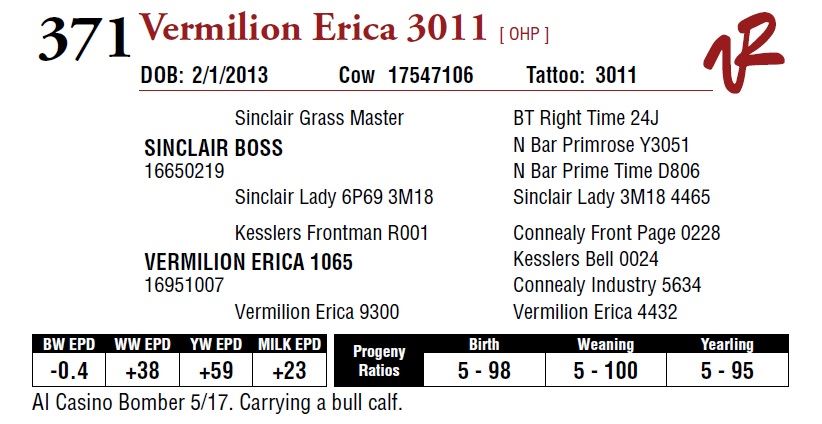 All bulls will be covered 50% by Vermilion Ranch if they are injured during their first breeding season. Breeding season is defined as the 60-day period following the first turnout of bulls.